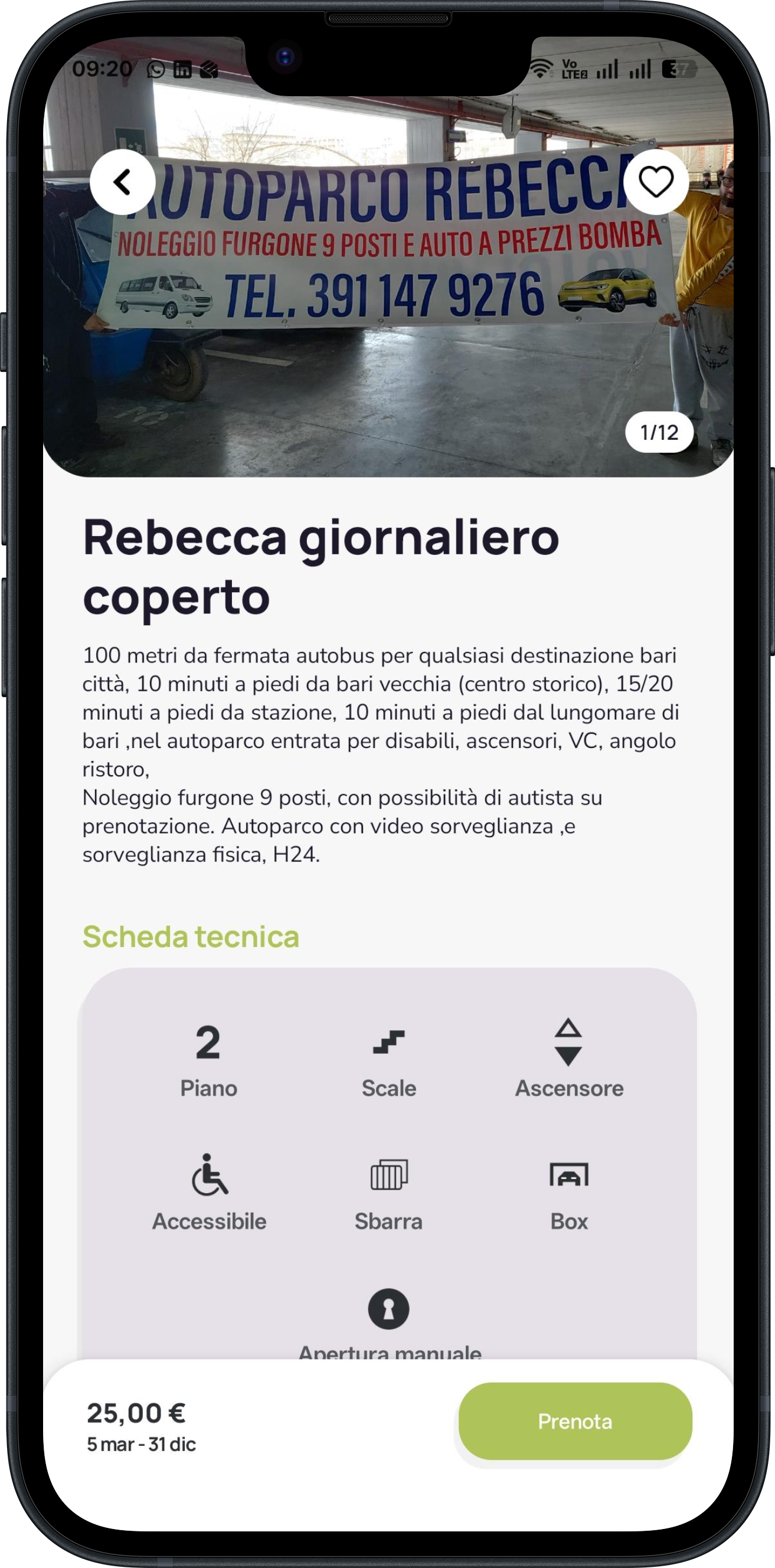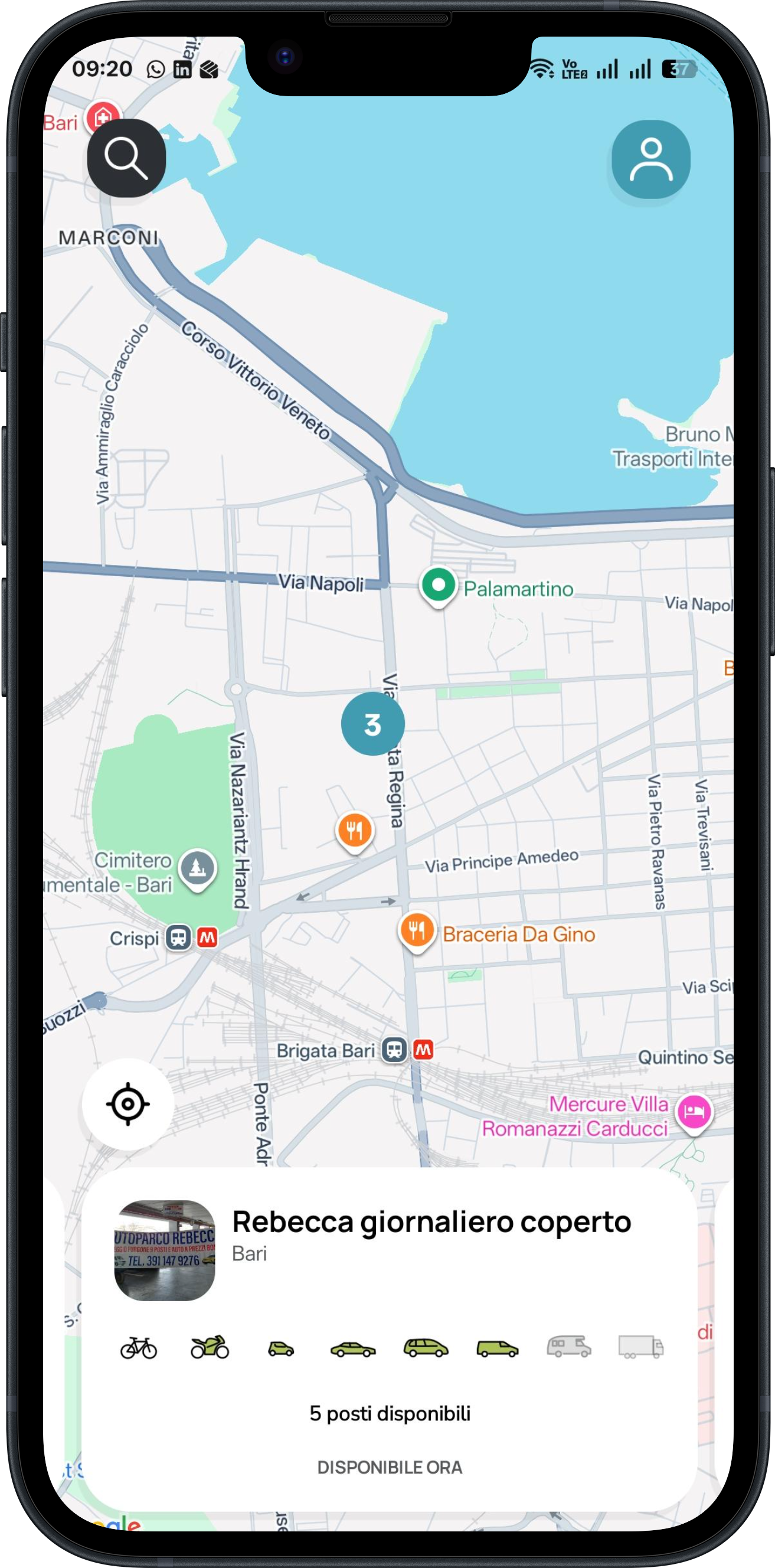 Utilizza l’app Garaging per cercare e prenotare il parcheggio più adatto alle tue esigenze.