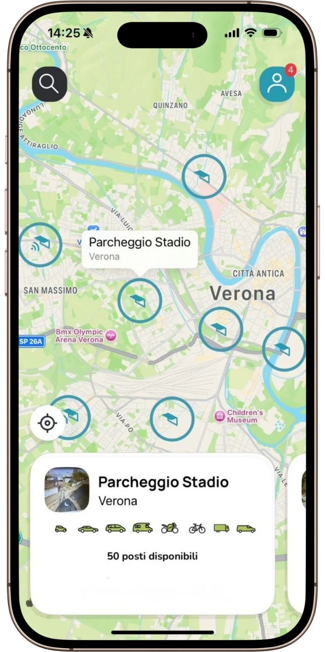 Utilizza l’app Garaging per cercare e prenotare il parcheggio più adatto alle tue esigenze.